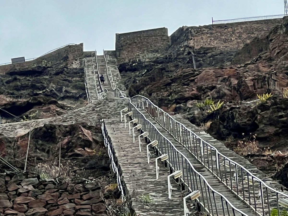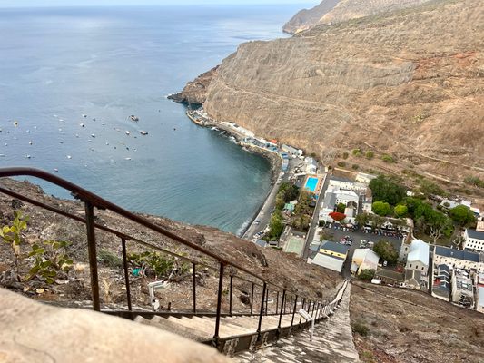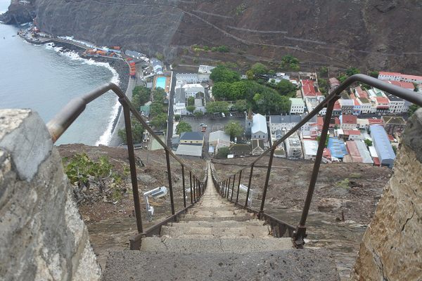 The aptly named Jacob’s Ladder on the Island of Saint Helena is a heart-pounding flight of 699 steps ascending to an elevation of 600 feet on Ladder Hill overlooking Jamestown, the capital city of Saint Helena, one of three tiny islands in the South Atlantic Ocean that comprise the British Overseas Territory of Saint Helena, Ascension, and Tristan da Cunha.