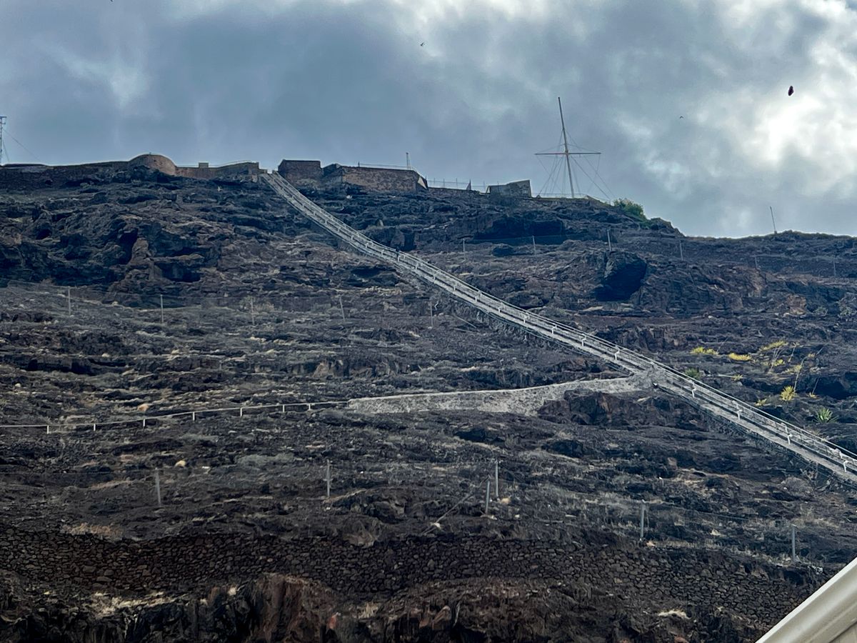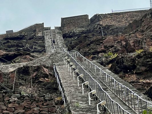 The stairway connects lower Main Street in Jamestown to the ruins of Ladder Hill Fort in the area known as Half Tree Hollow. The stairs are all that remain of a funicular constructed in 1829 for the Saint Helena Railway Company. It replaced the rope ladder soldiers climbed to move between Jamestown and their barracks far above.