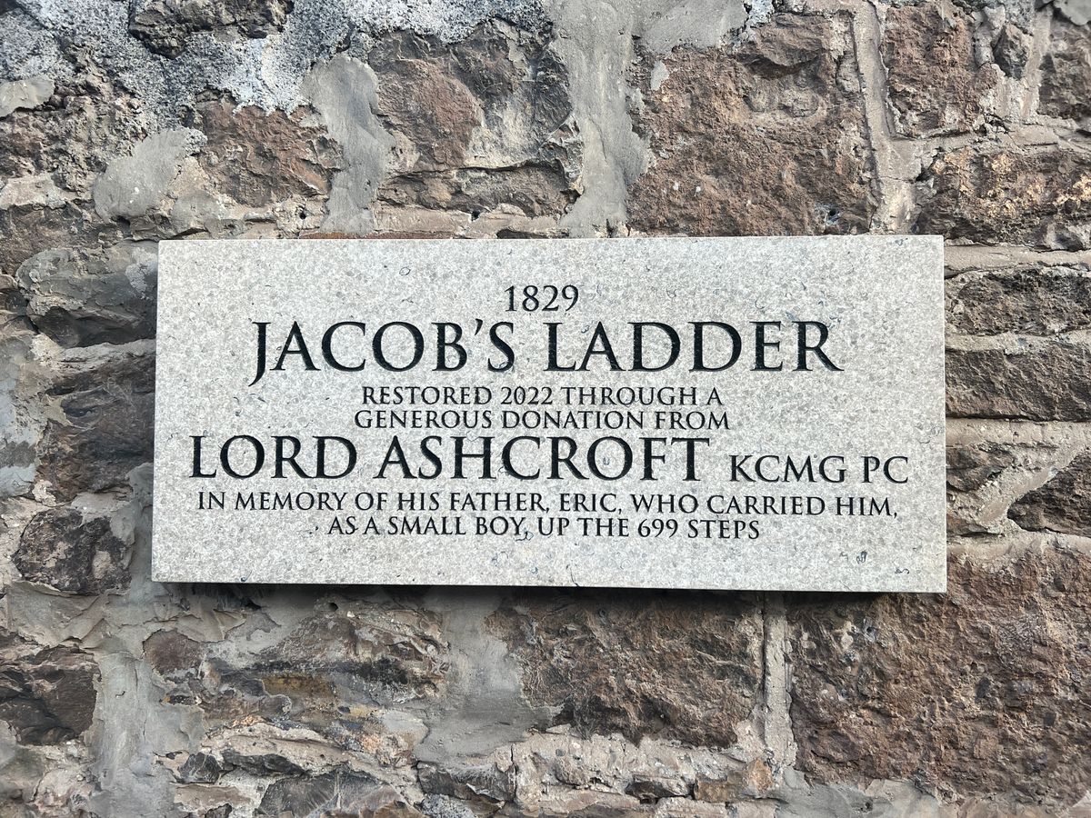 The line length of the Ladder is almost 924 feet, with a maximum incline of 41 degrees. The steps have an 11-inch rise, making them exceptionally strenuous to climb. Night lighting was installed along the sides in 2000. An encouraging marker denotes the halfway point.