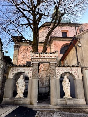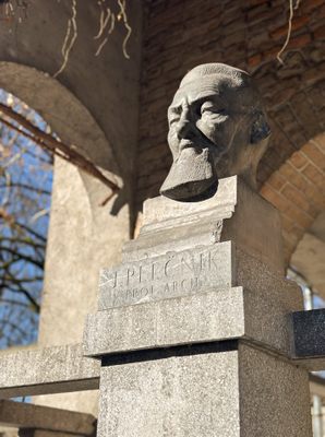 One of Jože Plečnik's last creations in Ljuljana was a renovation, in 1952, of a former monastery of an order of Teutonic knights into an outdoor concert venue. The complex included a small church, three monastic cloisters, a prior’s residence, and enclosed gardens. Ideally situated in the city center at the end of Vega Street—an area Plečnik had redesigned with the vision of making it an arts hub—it was a prime location.