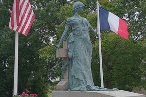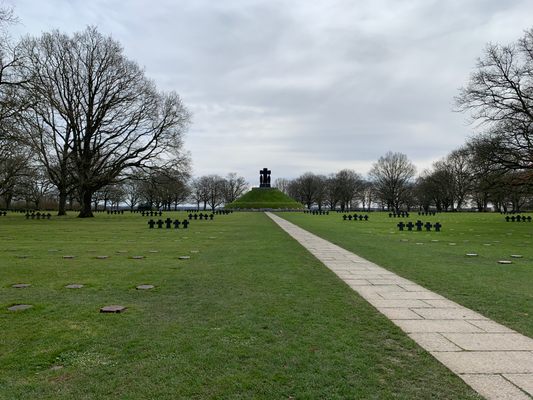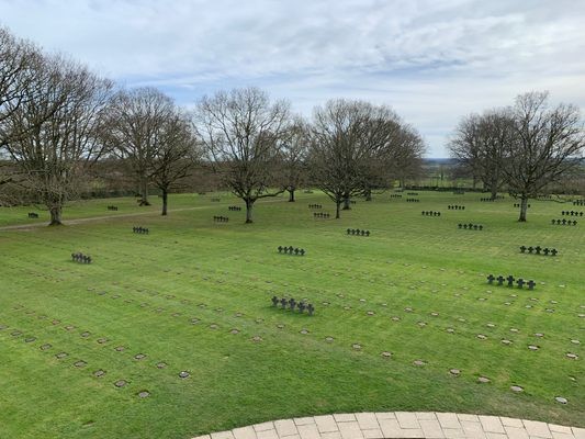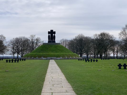 The cemetery is a solemn place, a reminder of the horror of war and that lost life is tragic. The central feature is a circular structure that houses the remains of hundreds of soldiers. Atop the mausoleum are statues representing those waiting for their return.