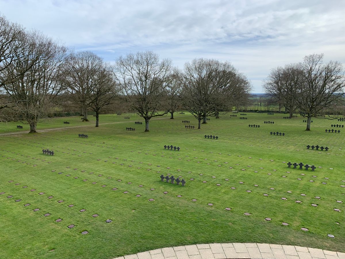 This cemetery contains the remains of 21,000 German soldiers who died during the Allied invasion in 1944. Unlike many cemeteries dedicated to those who died in battle, there are no statues glorifying the deeds of the fallen here. Even though what the Third Reich stood for was morally indefensible, many of the young men—some of them teenagers—buried here were drafted against their will to fight for an unjust cause.