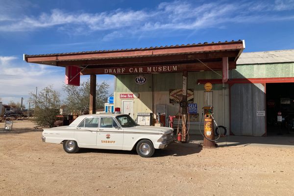 In addition to the stunning car collection and the musical instruments, there is also a collection of gas pumps, road signs, oil cans and other car-related accessories from the Great Depression era.